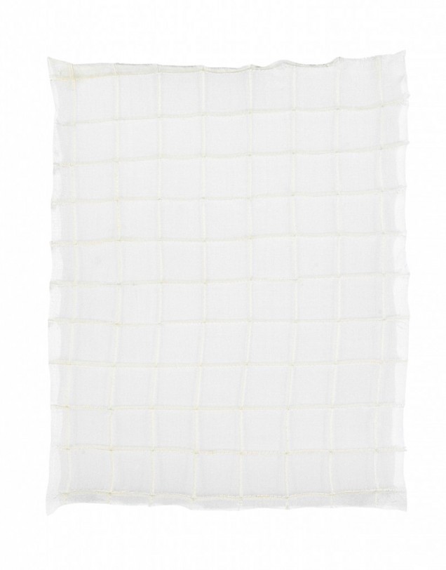Sahar-Saâdaoui Quadrillage 034, couture sur soie, 22×28 cm, 2014.