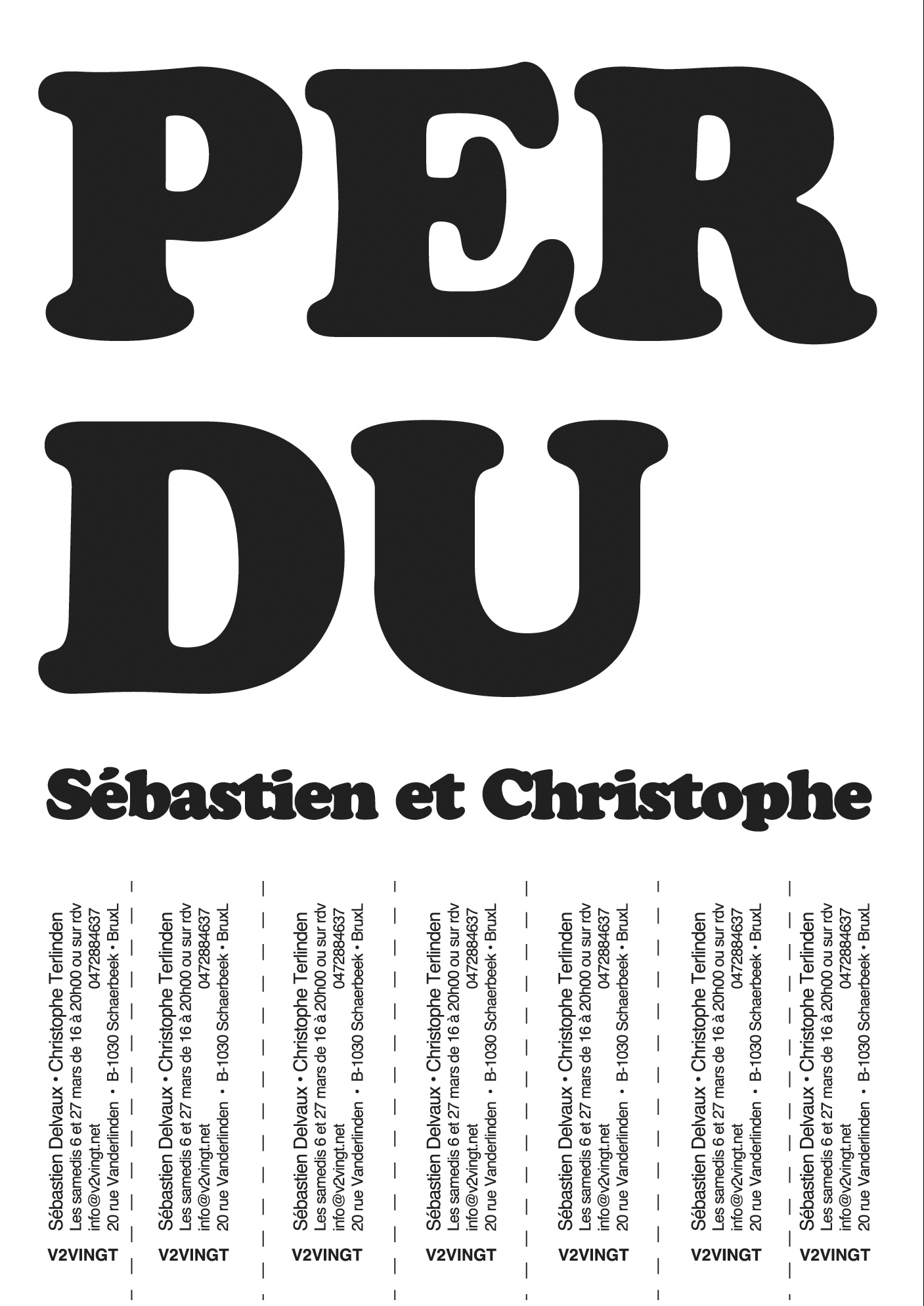 Par ses glissement sémantiques, ses jeux d’appropriation, ses auteurs multiples (approche participative), ‘Perdu’ est une exposition qui provoque les accidents, comme pour perdre l’amateur d’art dans un labyrinthe de signes, afin de lui proposer des briques de signifiants à s’approprier pour édifier sa propre construction en toute conscience de soi, c’est-à-dire en sachant qu’il est en train de construire une architecture parfaitement relative. Et Il quittera l’exposition sans savoir si il s’est fait embarquer malgré lui, ou si il est bien l’auteur de ce qu’il pense… parce qu’à y regarder d’un peu plus près, l’exposition « Perdu » n’est pas n’importe quoi. Tout a été pensé pour égarer afin de mieux donner à recomposer. C’est un processus développé à deux têtes et quatre mains avec minutie, avec l’intention de découper au scalpel les évidences que nous projetons sur notre environnement. Les artistes vous offrent un miroir découpé en pièces de puzzle. Il vous appartient de reconstituer votre propre image…