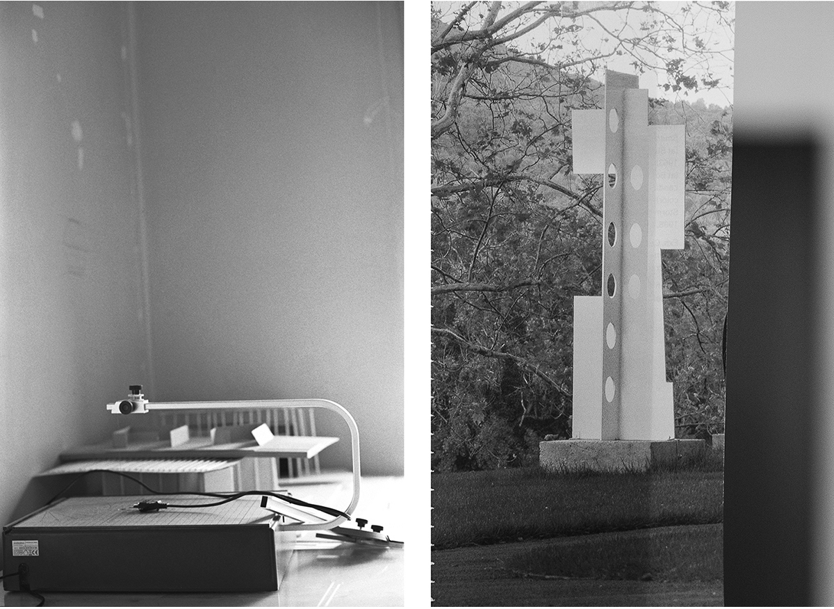L’oeil de Michel catégorise les plans graphiques en compositions quasi abstraites découpées dans le champs de son environnement. Les interventions d’Adriaan paraissent avoir la même intention. L’universalité suprématiste semble se répéter dans leur dialogue comme un écho infini de l’histoire. Les repères sont dissouts par la collaboration des deux artistes : oeuvres à quatre mains et échanges photographiques atténuent toute affirmation identitaire. L’état de flottement est rejoué jusqu’à atteindre l’harmonie parfaite de l’absence de soi. Regardant l’évanescence de l’ensemble, nous sommes en pesanteur et libres de ressentir l’universalité comme une puissance…