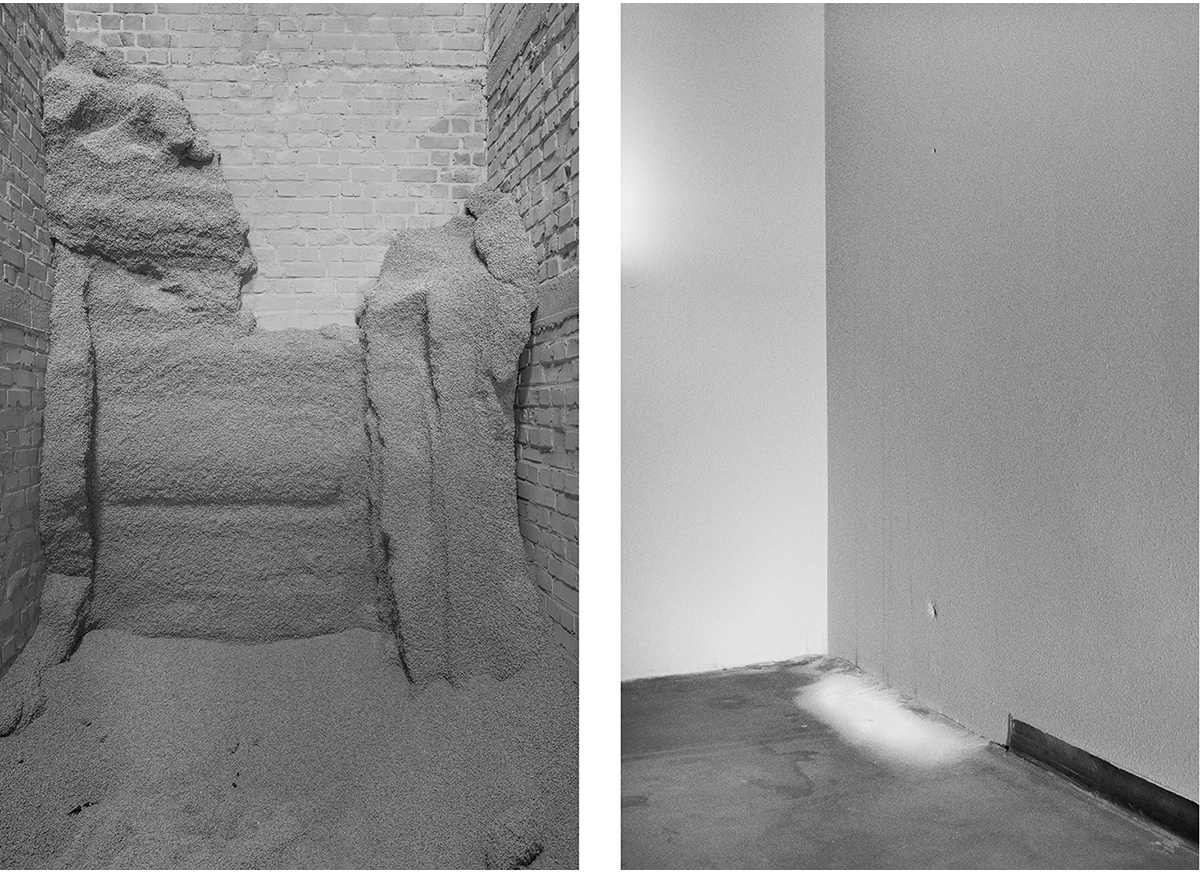 Et l’effet de cadrage définit l’exposition de ses prémices jusqu’à sa perception en passant par sa conception. Tout est millimétré, tout est cadré, pour proposer une expérience visuelle d’un équilibre aérien. Ephémère et précaire sont les adjectifs qui agrègent la trilogie à la fois sculpturale et murale D’Adriaan Verwée. La poussière, la lumière et une stabilité précaire en sont les liants visuels: l’ensemble construit la possibilité de sa propre disparition, et de l’impression qui en émane nous ressentons sa nature versatile.